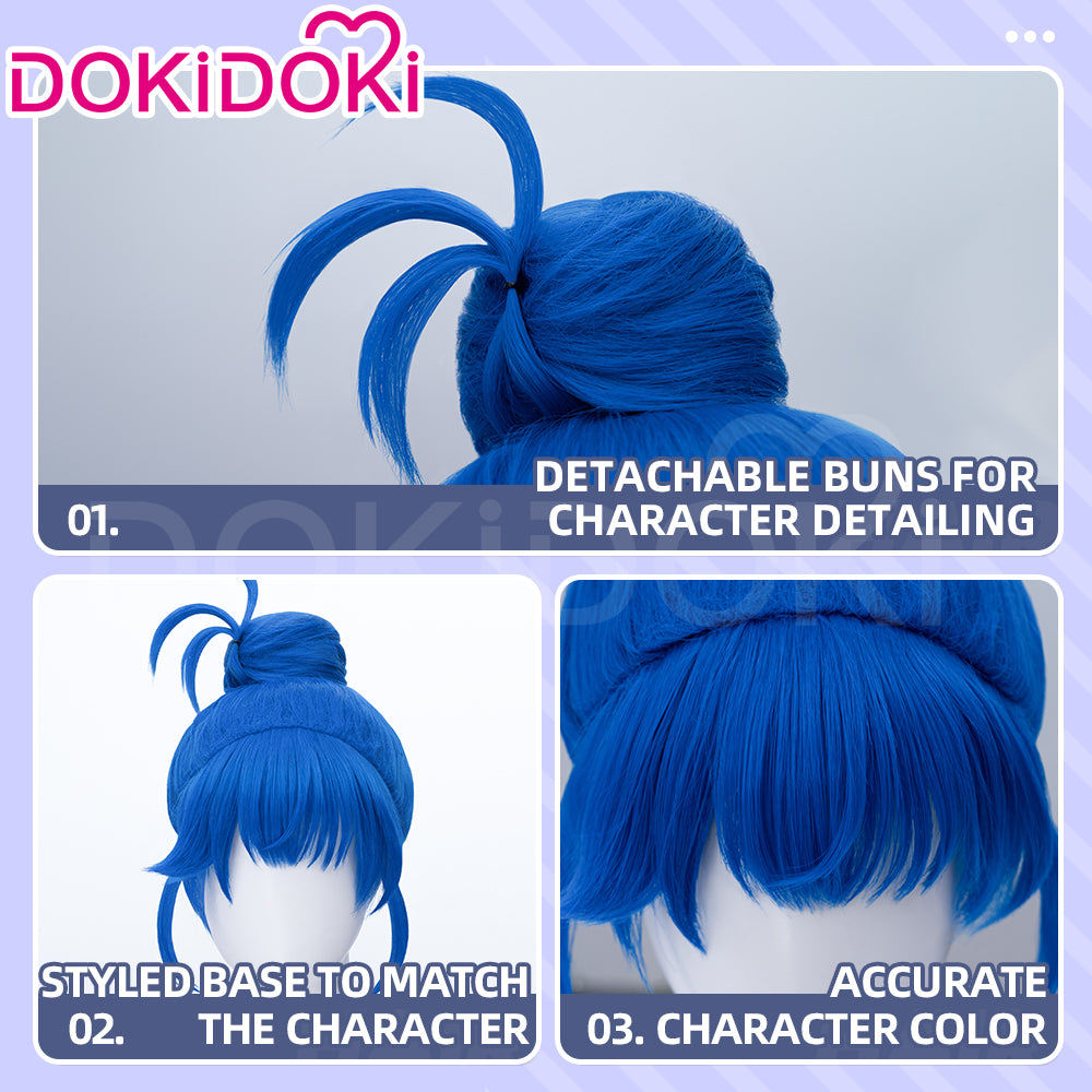 【Ready For Ship】DokiDoki Game Cosplay Women Wig Blue Hair Buns x LE SSERAFIM