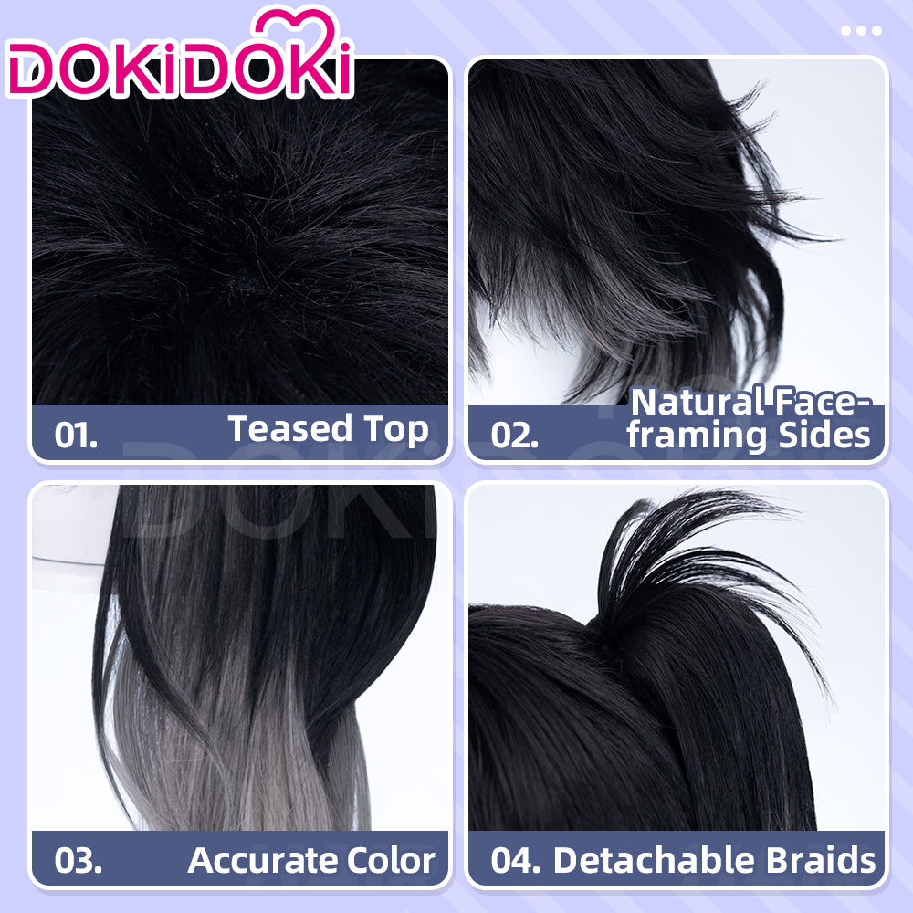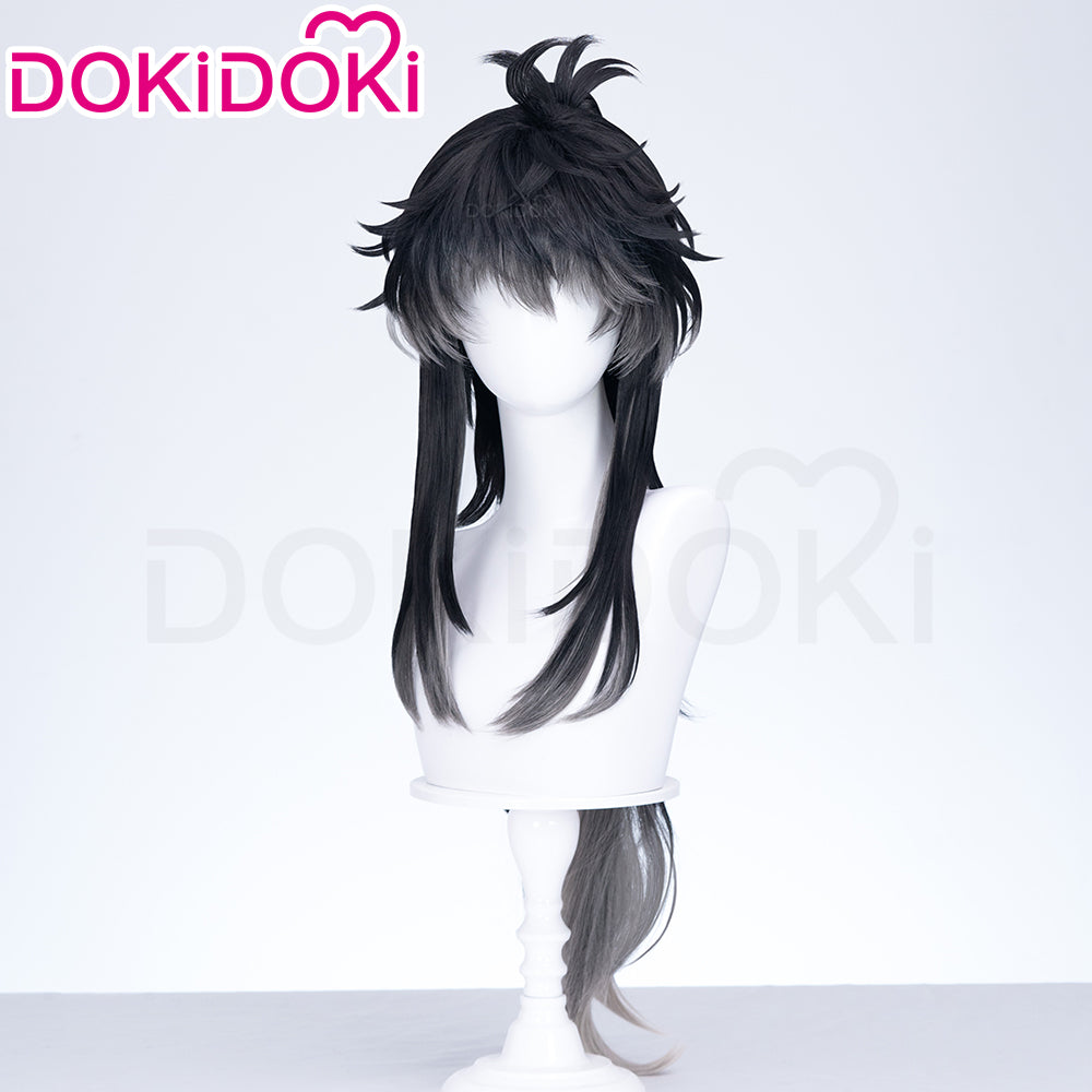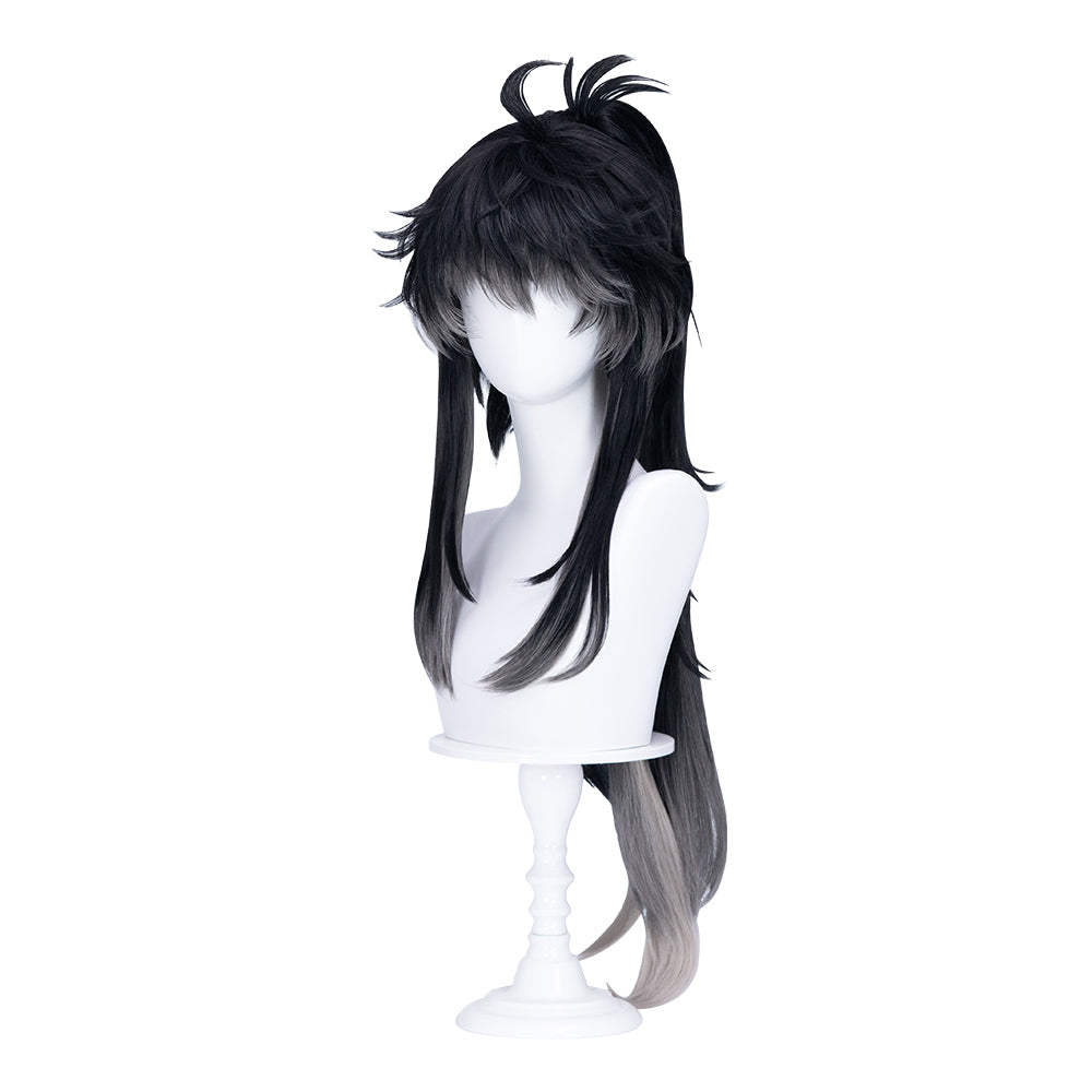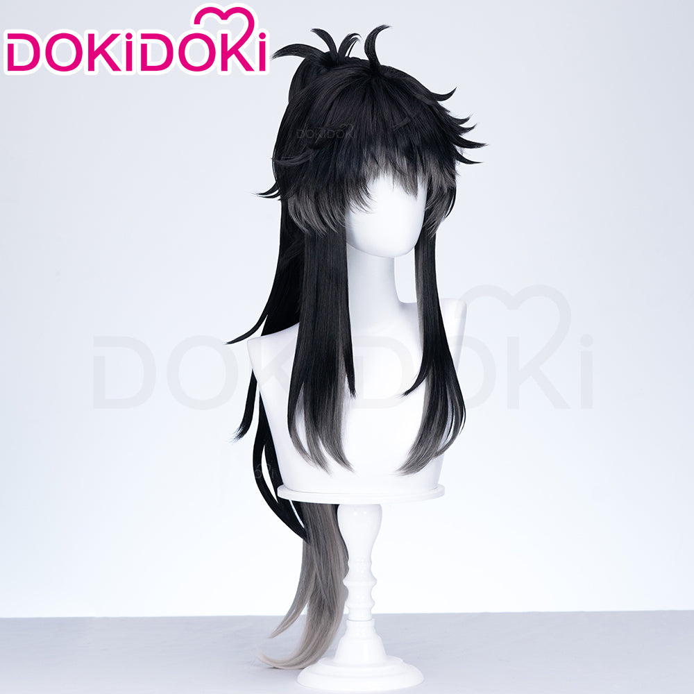 【Ready For Ship】DokiDoki Game Wuthering Waves Cosplay Qiuyuan Wig Long Curly Black Gray Gradient Hair Qiu Yuan
