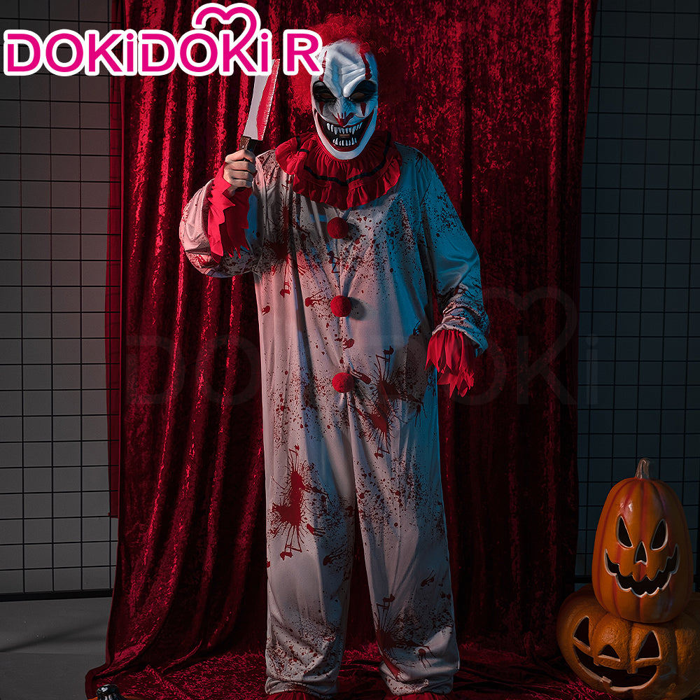 【In Stock】DokiDoki-R Cosplay Halloween Creepy Clown Costume White Red Suit Scary Clown Jumpsuit