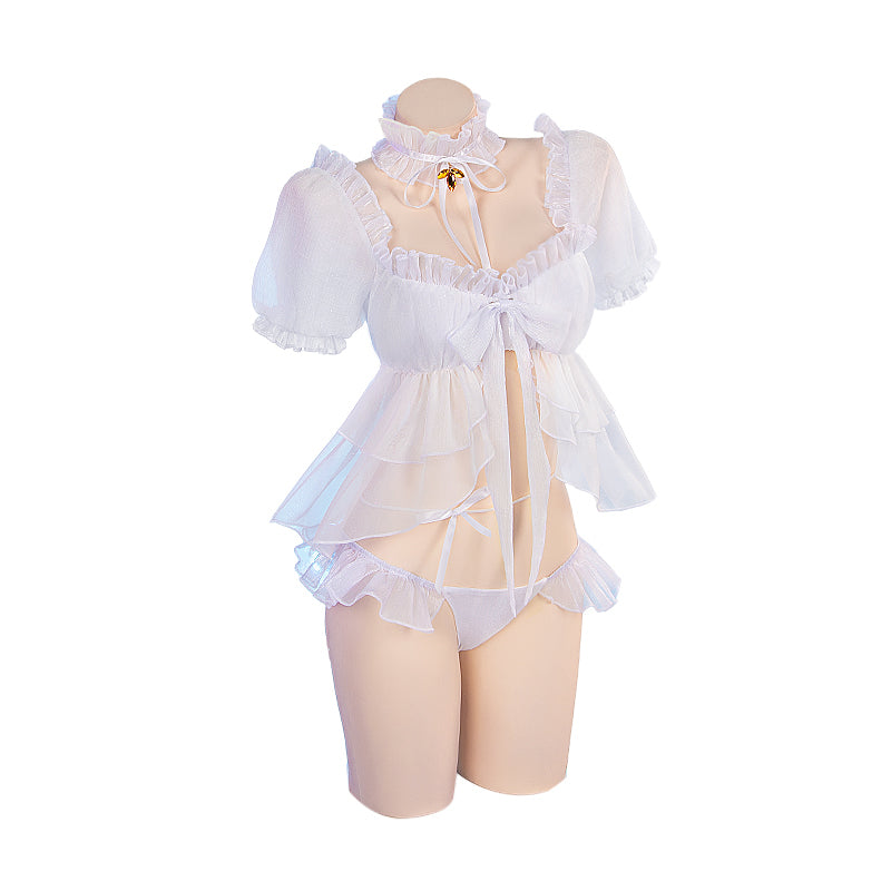 1. Full set=Winged Tulle + Collar Butterfly Knot + Chest Butterfly Knot + Upper Garment + Waistband + Underwear + Leg Strap*2