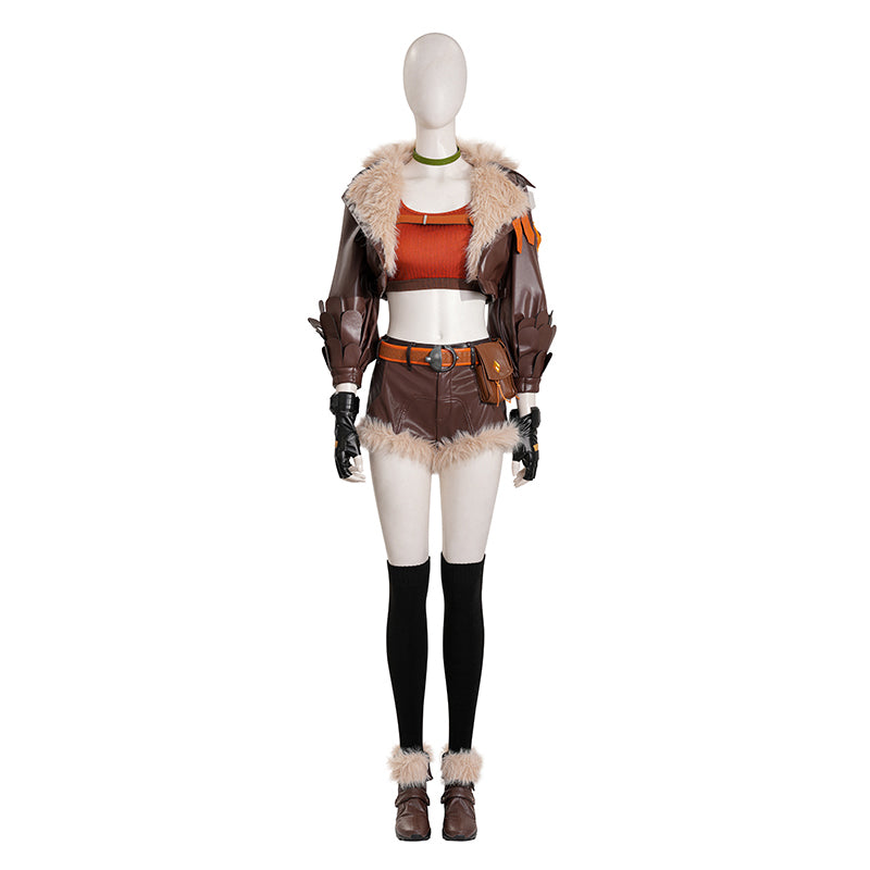 【Tail Ready For Ship】【Size XS-3XL】Dokidoki-R Game Cosplay Costume Woman Brown Leather Jacket Suit